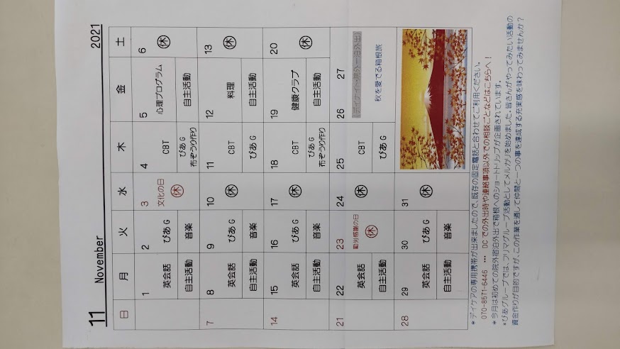 今月のデイケアプログラム«
